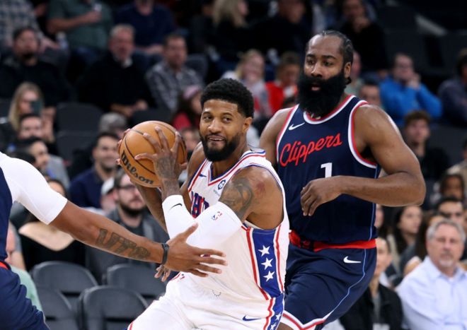 可以简单理解成,从薪资层面,乔治回归后一定锁定三号位首发,场均25分的输出才能匹配他的薪资水准。但过去几个赛季他饱受伤病困扰,他的状态就像是比尔一样,不可逆也回不去了。另一方面,从位置角度,76人后场双枪锁定马克西+埃奇库姆,乌布雷+格莱姆斯+沃特福德,都能很好胜任三号位,就拿乌布雷来说,场均18.6分+51%+38%的两项命中率,他薪资只有840万;格莱姆斯拿着资质报价,作为一名替补,都能贡献场均17.2分4.4助攻的数据。而且76人后场双枪,和这几位锋线都极其适配,能打快节奏,能拉开空间,都能换防。