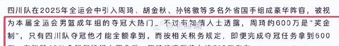 而这次根据媒体之前的报道,我们了解到周琦代表四川队参加全运会,可是拿出了600万的薪资。