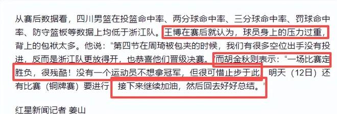 但是之后四川队的外线却频频掉链子,更是通过包夹来限制周琦,最后被对手以三分之差拿到进入决赛名额。